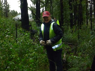 ANZ staff put up with bitterly cold conditions whilst pulling out burnt fence lines in regrowth at Kinglake. We know they’ll ensure their fingers thaw out before they start work.