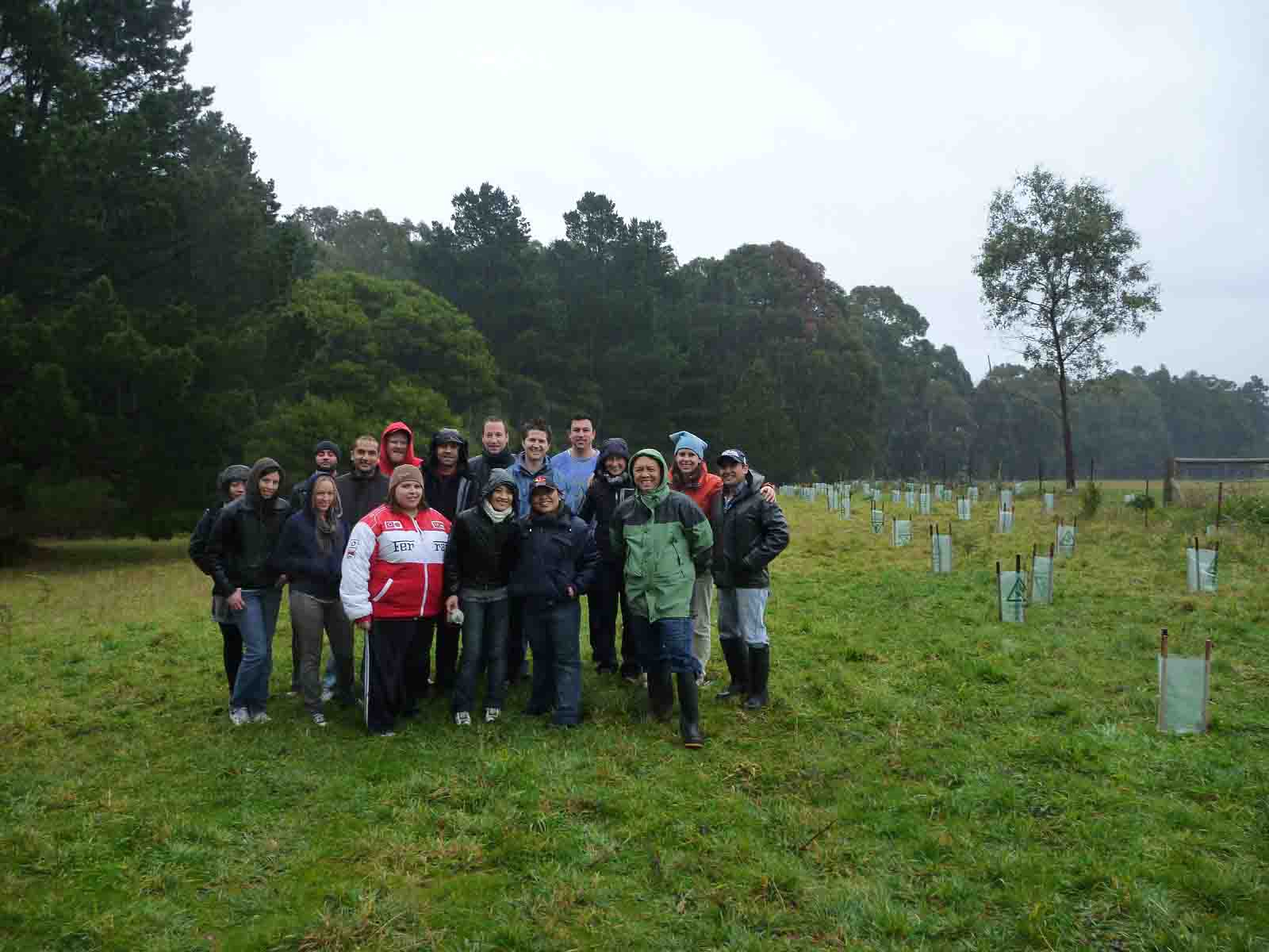 They lost their house and garden in the fire and are rebuilding themselves. They needed plants and mulch to fill in the muddy exposed areas and as well as screening from neighbours and the road. The rain didn’t stop this team from finishing the job but we were happy to retreat to the Flying Tarts Bakery for a splendid lunch and an early trip home in a warm bus.