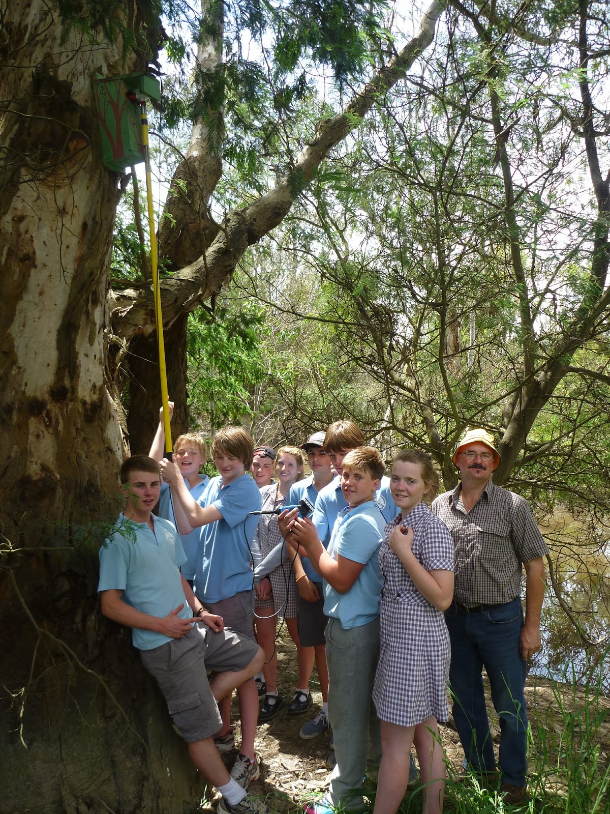 Yea HS students inspecting nest boxes at the Yea Wetlands |