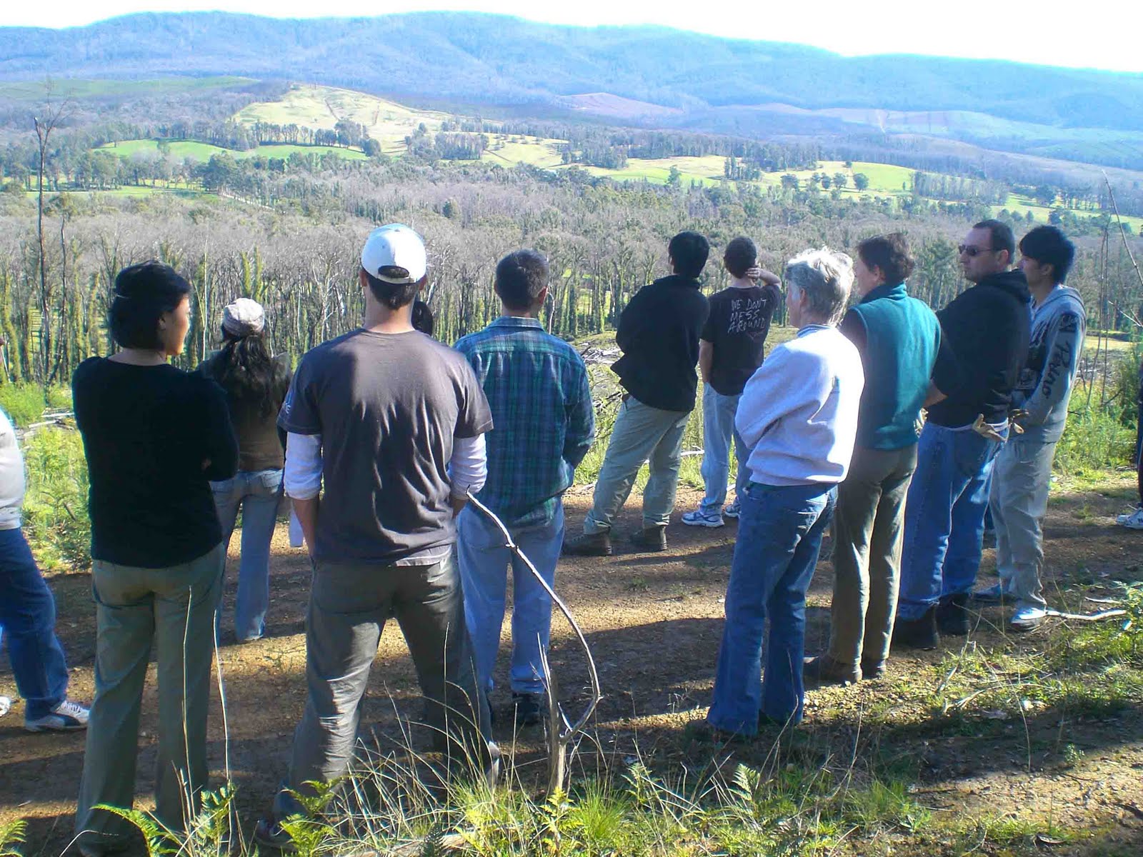 Enjoyed lunch in the sunshine and a tour of the building followed by a hike to the hilltop at the back of the property . Studied the incredible diversity of plants regenerating after the fire , a few of which we could not identify but will go back to collect seed .
