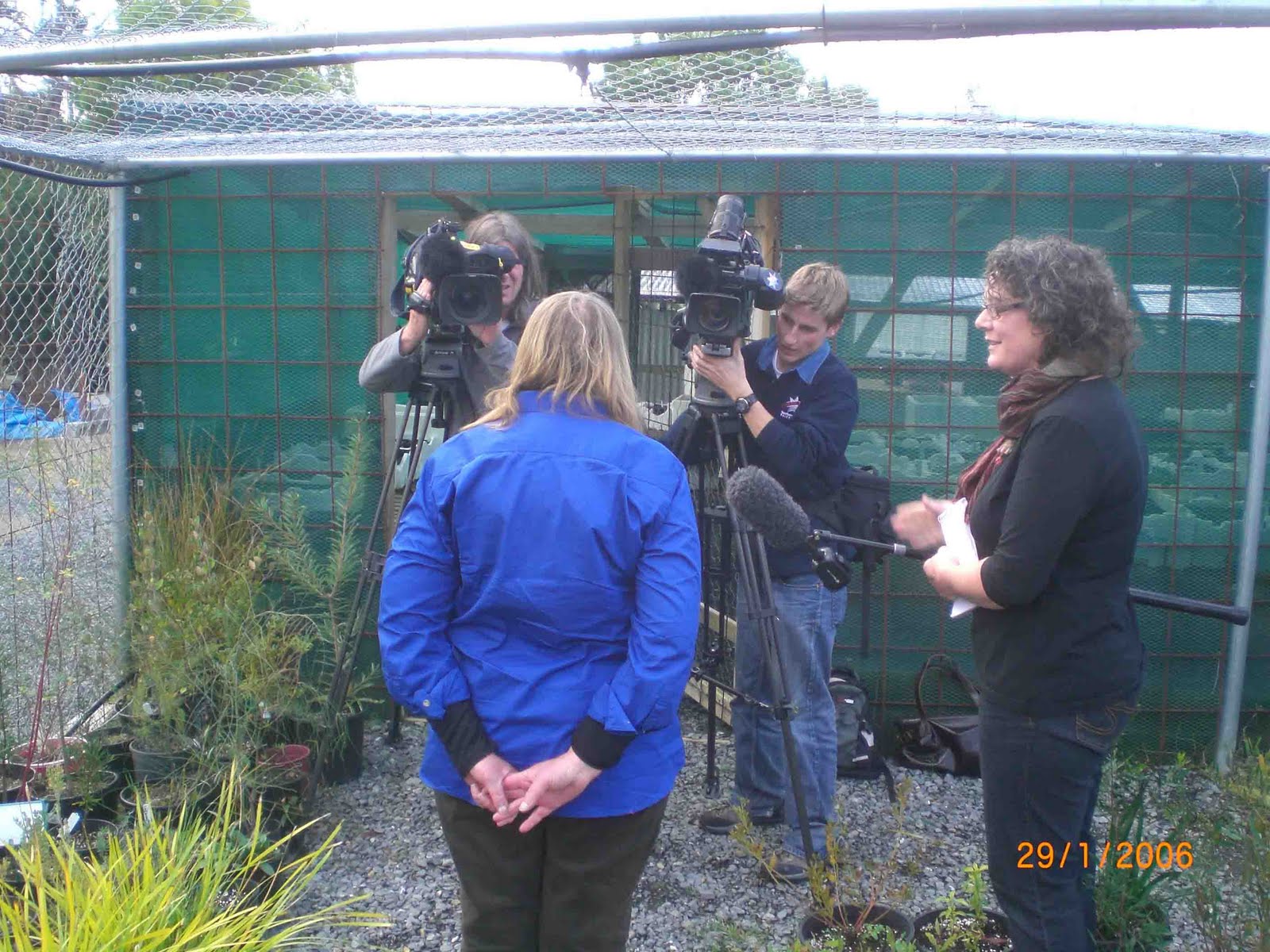 Tasmanian Understorey Network volunteers grew 3000 plants and Janet & Justus travelled to TAS to thank the growers and collect the plants . Not much happens in Hobart on a Sunday and the local press & TV reporters covered the story of plants going to Vic for Bushfire Victims.